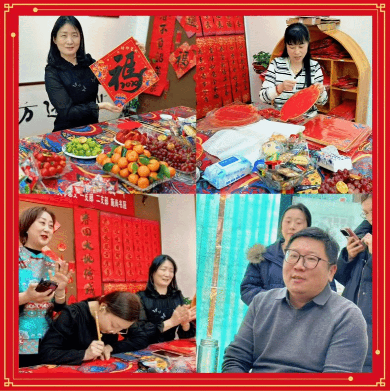 活动现场瑞气盈堂,暖意融融,大红宣纸铺陈长案,浓墨飘香盈满厅堂。大家挥毫泼墨、笔走龙蛇,“跃马争春不负韶华景,乘风追梦勇担时代责”“马踏青云描就山河色,春回大地绘成岁月图”春联对仗工整、气势磅礴,既紧扣马年奋进意象与立春开新寓意,又融合高校育人底色与民革同心使命;一个个苍劲饱满的“福”字跃然纸上,承载着春安岁顺、福满乾坤的美好祈愿。现场墨香与笑语交织,党员们并肩抻纸、晾字、交流,尽显同心同德、其乐融融的组织温情与深厚文化底蕴。