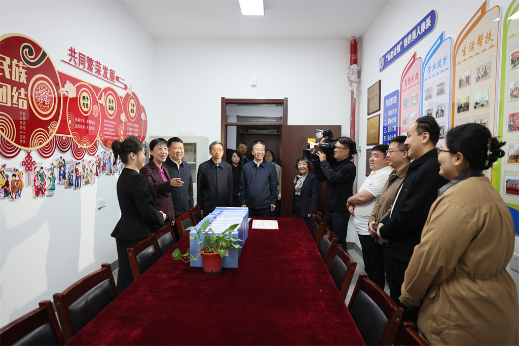 赵红严一行首先来到学校宁馨“一站式”学生社区。在艺博辅导员工作室(山西省首批辅导员名师工作室),赵红严详细了解思政力量下沉、党建引领沉浸式育人等做法。在同心圆工作室,她听取学校民族工作汇报。在民族学生支持发展中心,赵红严仔细了解了学校少数民族学生学习生活情况,与少数民族学生专职辅导员亲切交流,现场察看“民族微课堂”与普通话提升辅导课开展情况,对学校聚焦学生需求、精准补齐能力短板、助力就业发展的务实举措给予肯定。在国际学生活动中心,她了解中外学生共学共融、文化互鉴相关工作,对学校以社区为载体促进中外交流、增强文化认同的实践表示认可。