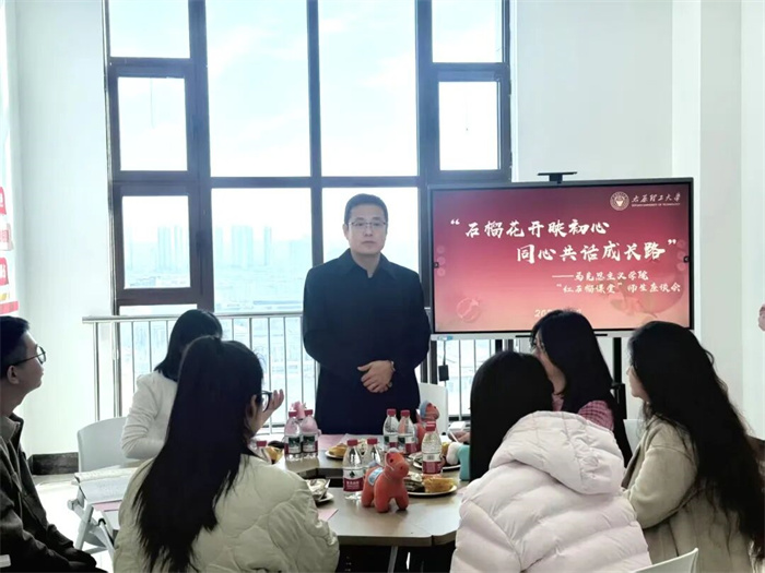 为深入贯彻落实习近平总书记关于加强和改进民族工作的重要思想,铸牢中华民族共同体意识,促进各民族学生交往交流交融,推动思政教育与民族团结工作深度融合,1月19日,马克思主义学院以“石榴花开映初心,同心共话成长路”为主题,举办“红石榴课堂”师生座谈会。院党委书记李济民、党委副书记安晓艳、团委书记冯妍、辅导员闫卓恩与民族学生齐聚一堂,共话青春成长之路。